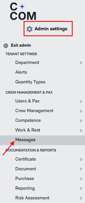 Once activated, a new Messages section will appear under Admin, where you can compose and send your messages.
