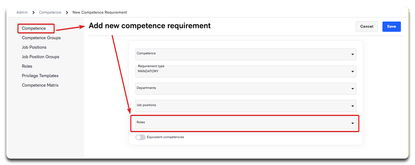 You can now add competence requirements directly to roles assigned to employees, in addition to the existing competence requirements linked to job positions.