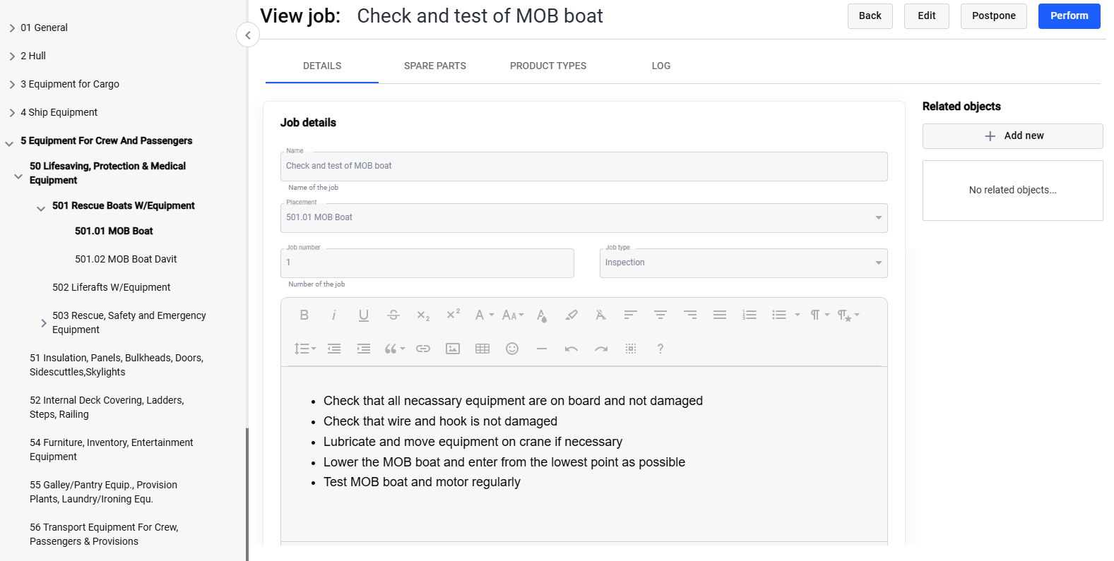 The Maintenance-module plays a crucial role in ensuring the safety and reliability of maritime vessels and equipment. It enhances maintenance operations and management, and contributes to compliance with regulatory requirements. This module serves as a central hub for planning, executing, and documenting maintenance tasks, promoting proactive maintenance practices for maritime safety.