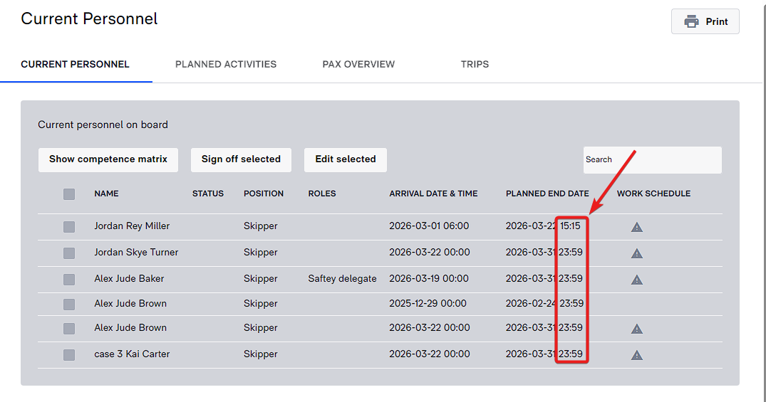 Aktiviteter viser nå ikke bare fra–til‑dato, men også eksakt start‑ og sluttidspunkt. Dette reduserer risikoen for overlappende aktiviteter eller turer, ettersom brukere tydelig kan se når forrige aktivitet eller tur ble avsluttet og dermed unngå å starte en ny før dette tidspunktet.