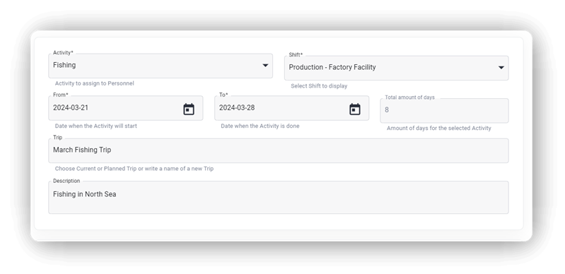 Ny funksjonalitet: Turer til Skift- og Bemanningsmodulen. Dette gjør det lettere å styre aktiviteter for avdelingene, med et vindu med inputfelt for navn, beskrivelse, datoområder. Dette gjør det lett å organisere turer- og aktivitetsstart. En valgmekanisme som lar brukere enten "Opprette ny tur" eller "Legge til i eksisterende". Forbedringer raffinerer også turoppdateringer og tilbyr detaljerte visninger fra fanen liste som gir god oversikt over planlagte turer.